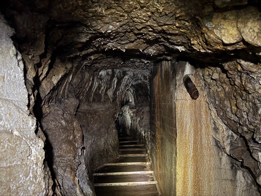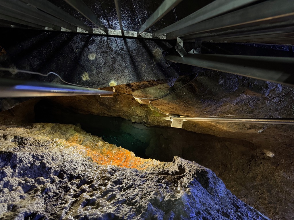 | In the silver mine, looking down. |