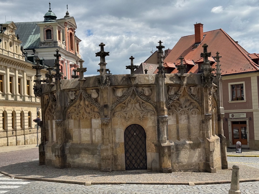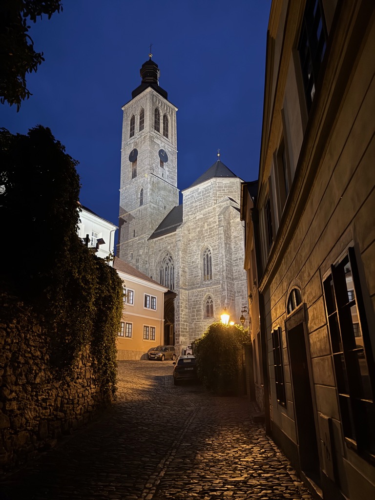 | St. Barbara’s Cathedral and GASK at night. |