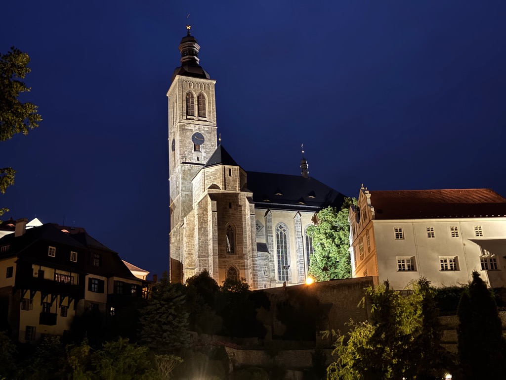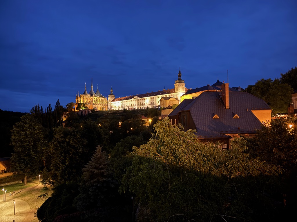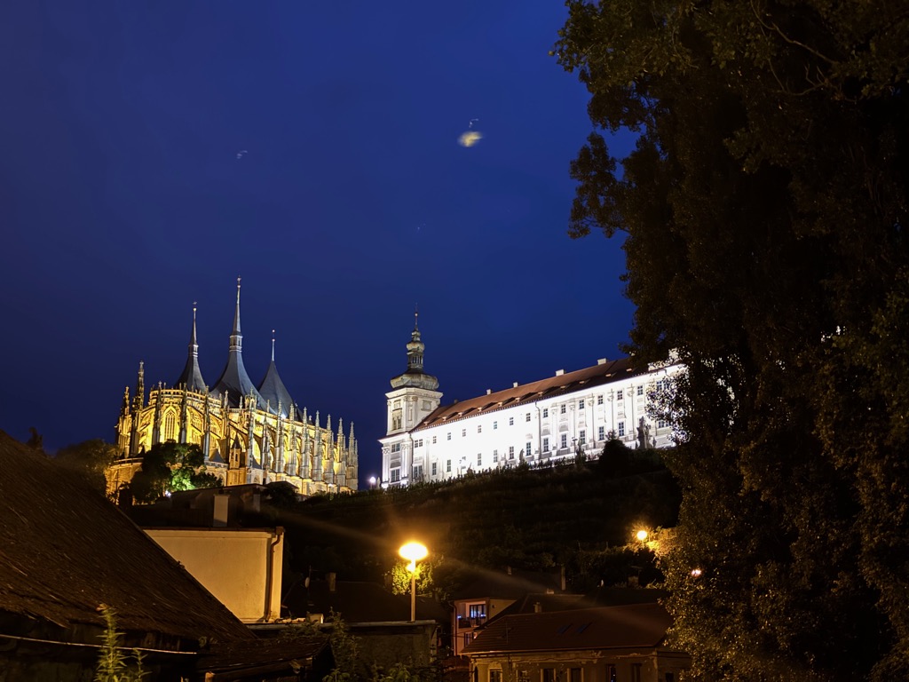 | St. Barbara’s Cathedral at night. |
