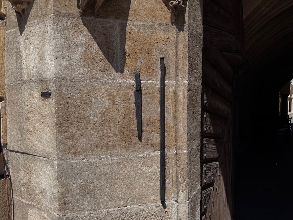 | Town measurement standards The bar on the right shows the town’s unit of length. The left shows how long a knife you may have in the market. . |