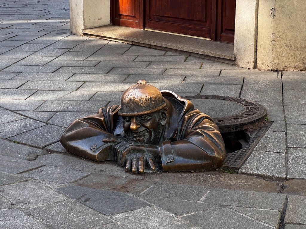 | Čumil Man At Work statue. |